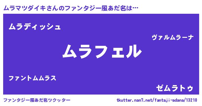 | 男性向けラノベタイトル風あだ名 | 『ムラマツダイキアートオンライン』 |