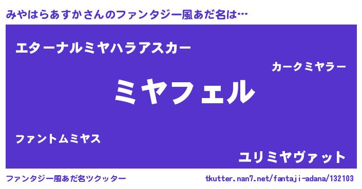 | ヒーロー風カッコイイあだ名 | 『スーパーミヤハラアスカ』 |