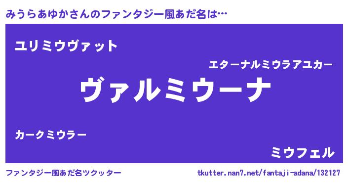 男性向けラノベタイトル風あだ名 | 『魔弾の王とみうらあゆか』 |