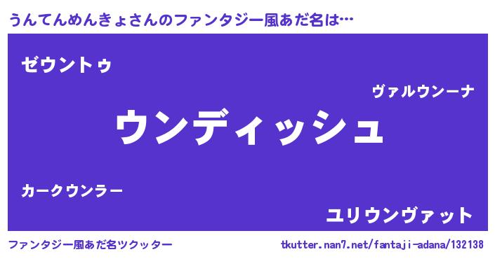 | ヒーロー風カッコイイあだ名 | 『ネオウンテンメンキョ』『仮面ウンダー』 |