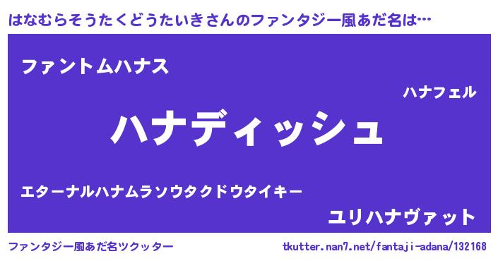 | 男性向けラノベタイトル風あだ名 | 『はなむらそうたくどうたいきという概念が存在しない退屈な世界 』 |