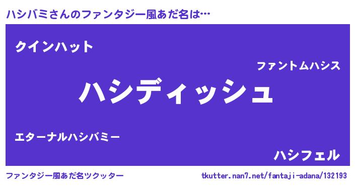 | ヘコむあだ名 | 『ハシバミ(笑)』『ハシっふぃ~』 |