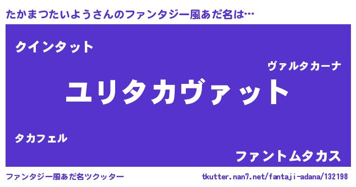 | 男性向けラノベタイトル風あだ名 | 『タカマツタイヨウスレイヤー』 |