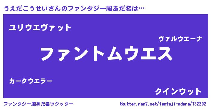 | 男性向けラノベタイトル風あだ名 | 『ダンジョンにうえだこうせいを求めるのは間違っているだろうか』 |