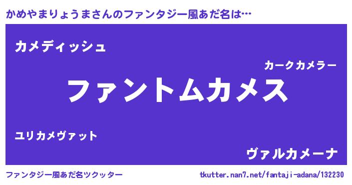 | 意味不明あだ名 | 『とにかく怪しいかめやまりょうま』 |
