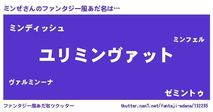 | 男性向けラノベタイトル風あだ名 | 『ミンゼスレイヤー』『魔弾の王とミンぜ』 |