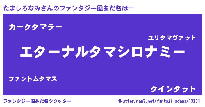 | 意味不明あだ名 | 『たましろなみフォーエバー』 |