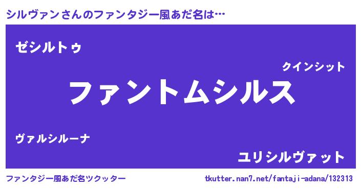 | 胡散臭い通販商品みたいなあだ名 | 『信頼と実績のサプリメント…その名も「シルヴァン」』 |