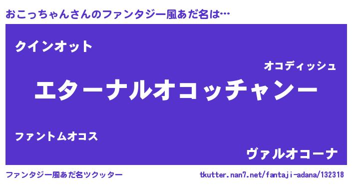 | 女子向けラノベタイトル風あだ名 | 『おこっちゃんの雑貨屋さん』 |