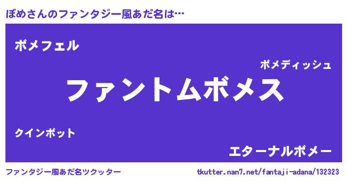 | ヘコむあだ名 | 『ぼめぷりん』『ぼめっふぃ~』 |