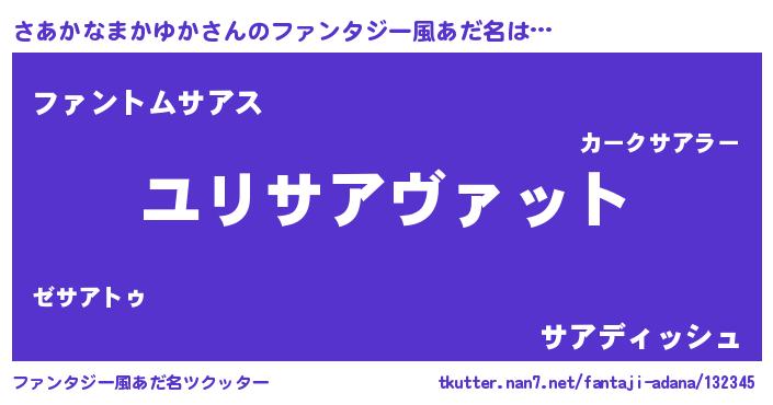 | 男性向けラノベタイトル風あだ名 | 『さあかなまかゆか~年齢イコール彼女いない歴の魔法使い~』 |