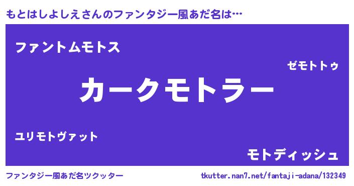 | ヒーロー風カッコイイあだ名 | 『幻影騎士モト』『ネオモトハシヨシエ』 |