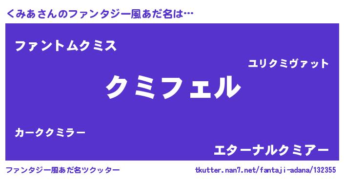 | ヒーロー風カッコイイあだ名 | 『スーパークミア』『天弓騎士クミ』 |