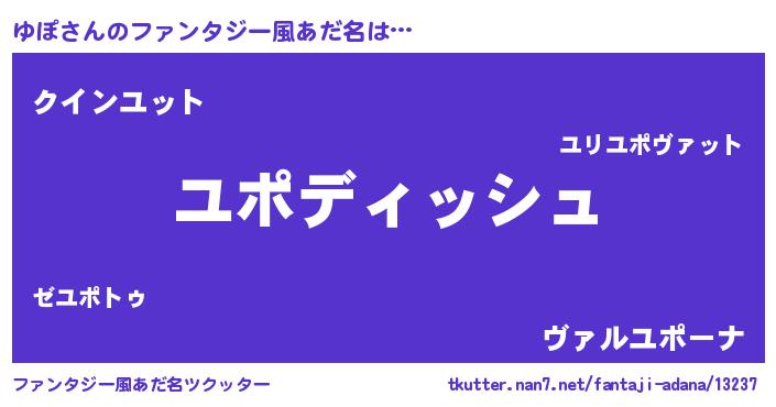 | 男性向けラノベタイトル風あだ名 | 『ゆぽという概念が存在しない退屈な世界 』 |