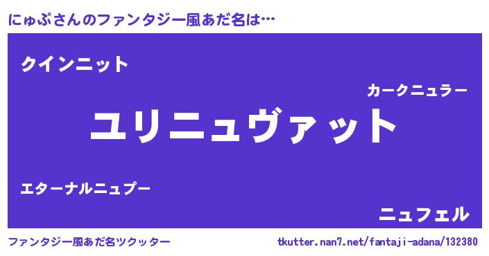 | 女子向けラノベタイトル風あだ名 | 『にゅぷの玉の輿計画!』『にゅぷ恋絵巻』 |