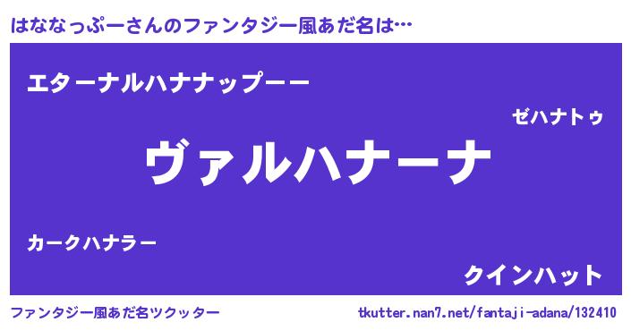 | 男性向けラノベタイトル風あだ名 | 『魔弾の王とはななっぷー』 |