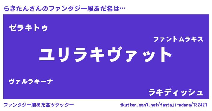 | ヘコむあだ名 | 『らきたん(笑)』『らきっちょ』 |