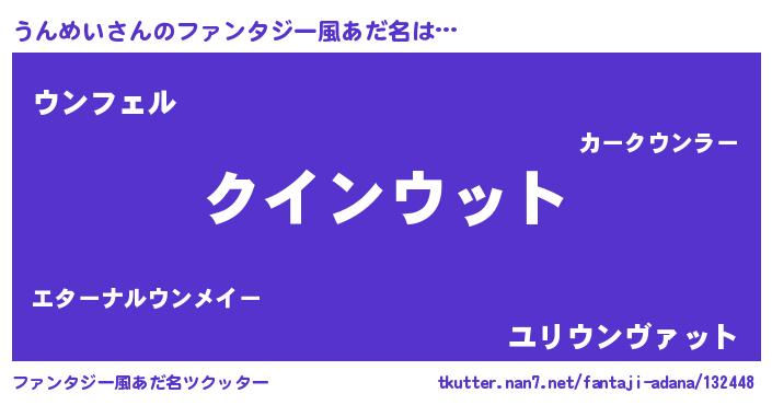 | ヒーロー風カッコイイあだ名 | 『慈愛の使者うんめい』『ネオウンメイ』 |