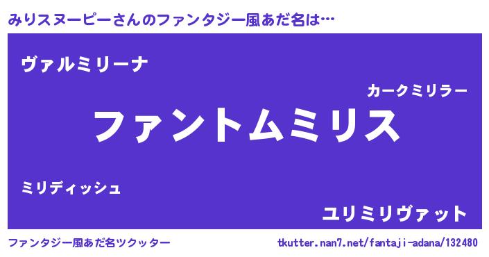 | ヒーロー風カッコイイあだ名 | 『幻影騎士ミリ』『仮面ミリダー』 |