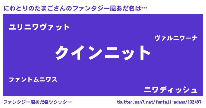 | 男性向けラノベタイトル風あだ名 | 『ノーゲーム・ノーニワトリノタマゴ』 |