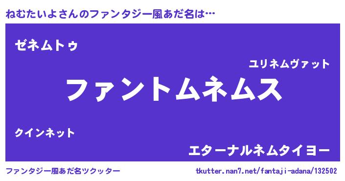 | ポケモン風あだ名 | 『ヒネムタイヨ』『ネムセウス』 |