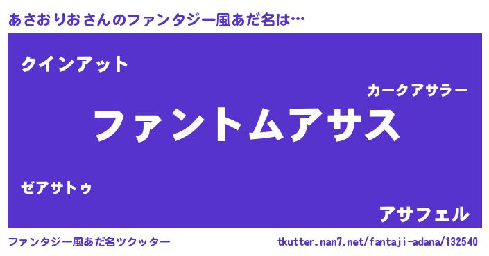 | ヒーロー風カッコイイあだ名 | 『幻影騎士アサ』『愛の使者あさおりお』 |
