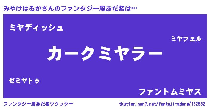 | ヒーロー風カッコイイあだ名 | 『ネオミヤケハルカ』『銀牙騎士ミヤ』 |