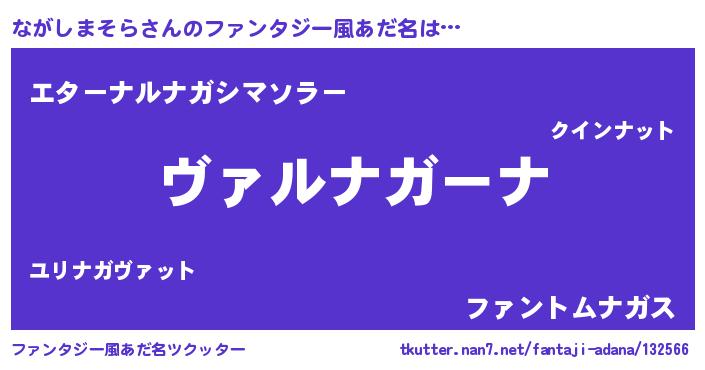 | 男性向けラノベタイトル風あだ名 | 『魔弾の王とながしまそら』 |