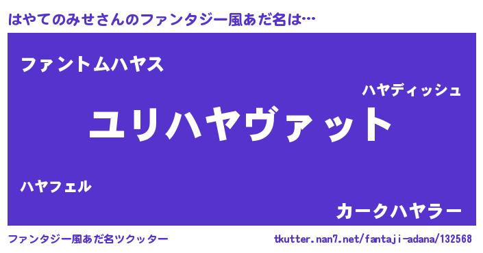 | ヘコむあだ名 | 『はやお』『はやてのみせ(小並感)』 |