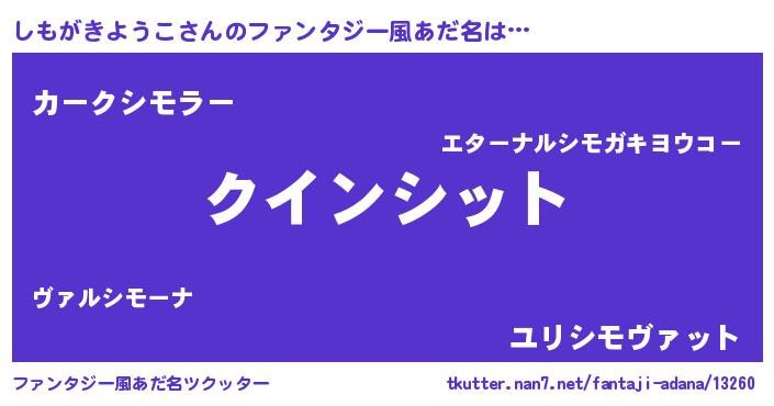 | 胡散臭い通販商品みたいなあだ名 | 『お金では代えられない隕石のかけら…その名も「しもがきようこ」』 |