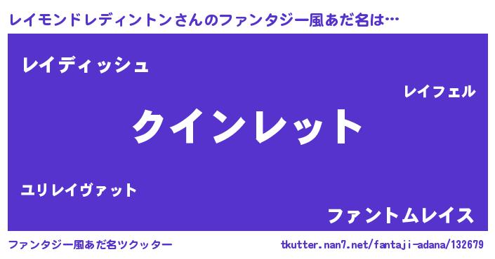 | 男性向けラノベタイトル風あだ名 | 『おまえをオタクにしてやるから、俺をレイモンドレディントンにしてくれ! 』 |