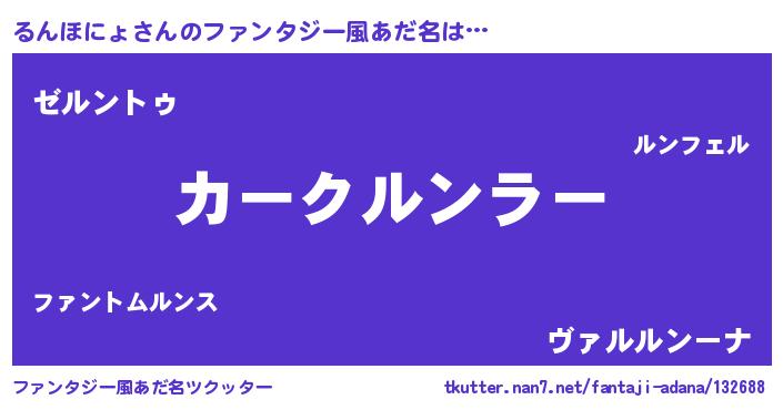 | 男性向けラノベタイトル風あだ名 | 『緋弾のルンホニョ』 |