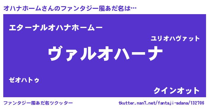 | 男性向けラノベタイトル風あだ名 | 『この素晴らしい世界にオハナホームを!』 |