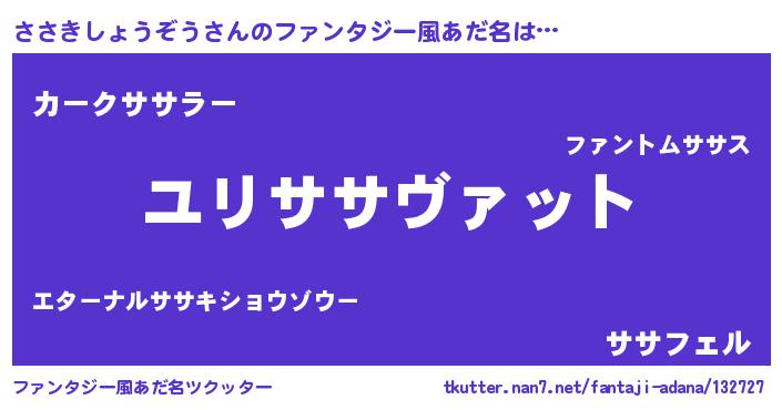 | 男性向けラノベタイトル風あだ名 | 『ササキショウゾウスレイヤー』 |
