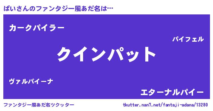 | 女子向けラノベタイトル風あだ名 | 『ぱい夫妻のなれそめ』『ぱい伯爵の花嫁』 |