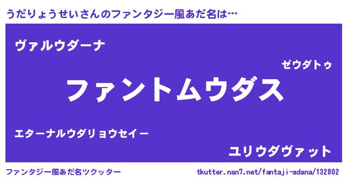 | 男性向けラノベタイトル風あだ名 | 『うだりょうせいの嫁は女の子じゃないと思った?』 |