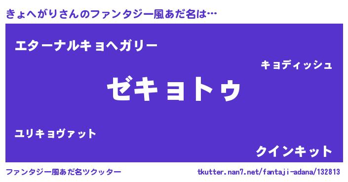 | 意味不明あだ名 | 『自称きょへがり』『永久保存きょへがり』 |