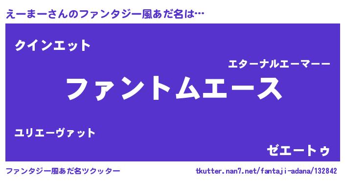 | ヒーロー風カッコイイあだ名 | 『天弓騎士エー』『慈愛の使者えーまー』 |