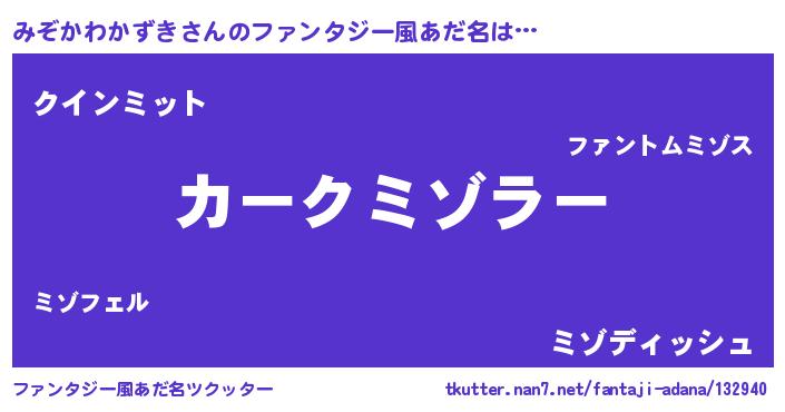 | 男性向けラノベタイトル風あだ名 | 『みぞかわかずきに滅ぼされるだけの簡単なお仕事です』 |