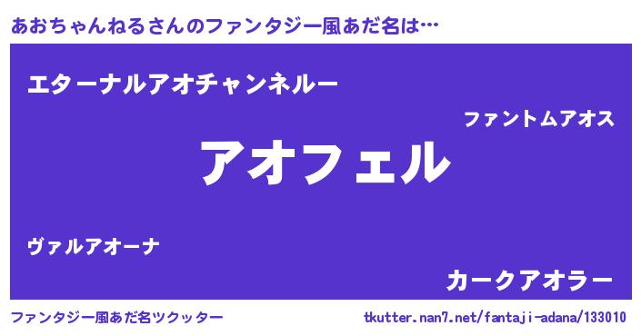 | 女子向けラノベタイトル風あだ名 | 『あおちゃんねる姫と円卓の騎士』 |