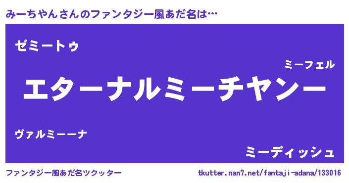 | 意味不明あだ名 | 『みーちやんフォーエバー』 |