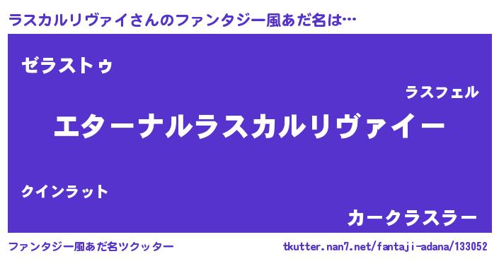 | 欧米人風あだ名 | 『ラスカルリヴァイクリステル』 |