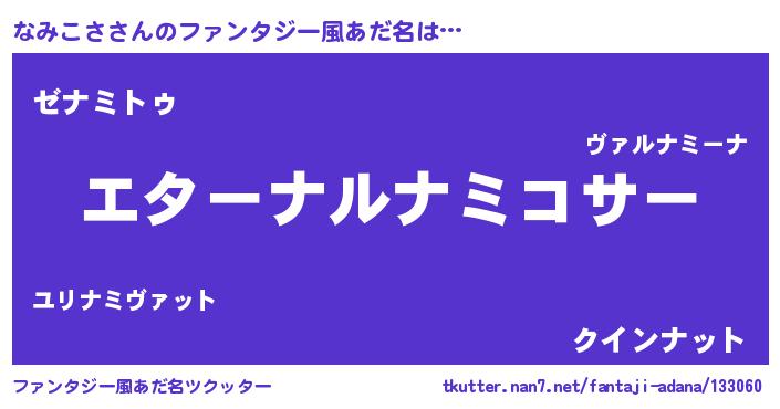 | 欧米人風あだ名 | 『なみこさクリステル』 |