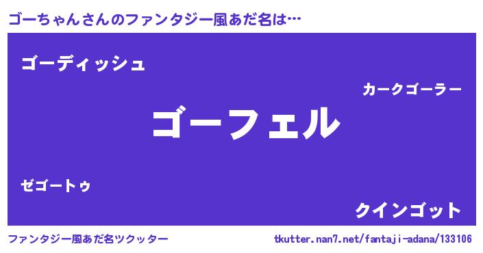 | ヘコむあだ名 | 『ゴーふぇ~』『ゴーちゃん(笑)』 |