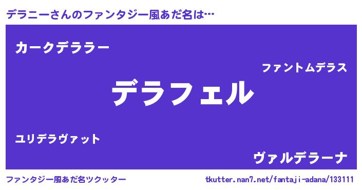 | 男性向けラノベタイトル風あだ名 | 『デラニーの憂鬱』『デラニースレイヤー』 |