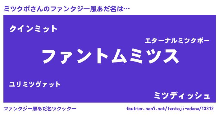 | ポケモン風あだ名 | 『ヒミツクボ』『ミックウザ』 |