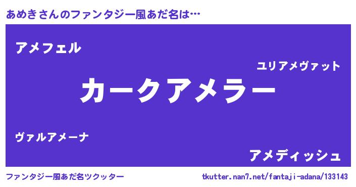 | ヘコむあだ名 | 『あめにー』『あめき(笑)』『あめお』 |