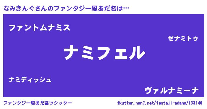 | ヒーロー風カッコイイあだ名 | 『スーパーナミキング』『暗黒騎士ナミ』 |
