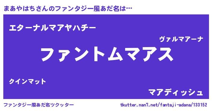 | 欧米人風あだ名 | 『アンジェラ・まあやはち』 |