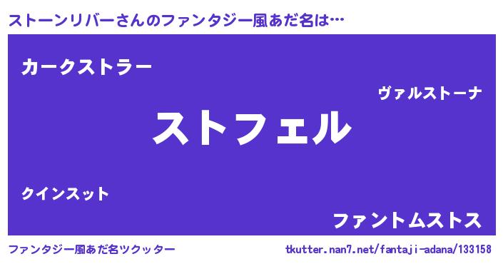 | 男性向けラノベタイトル風あだ名 | 『ストーンリバーの憂鬱』 |